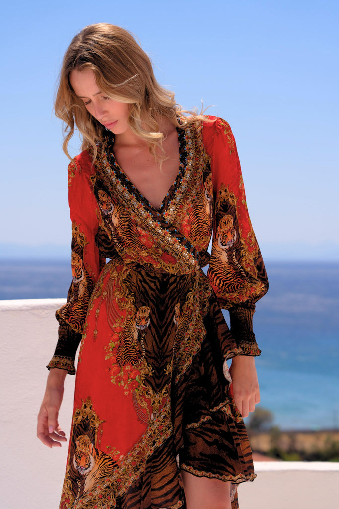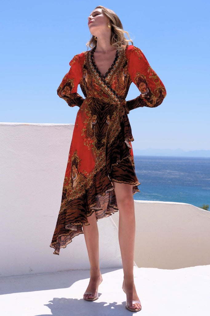TALES OF THE TIGRESS HI LOW WRAP DRESS